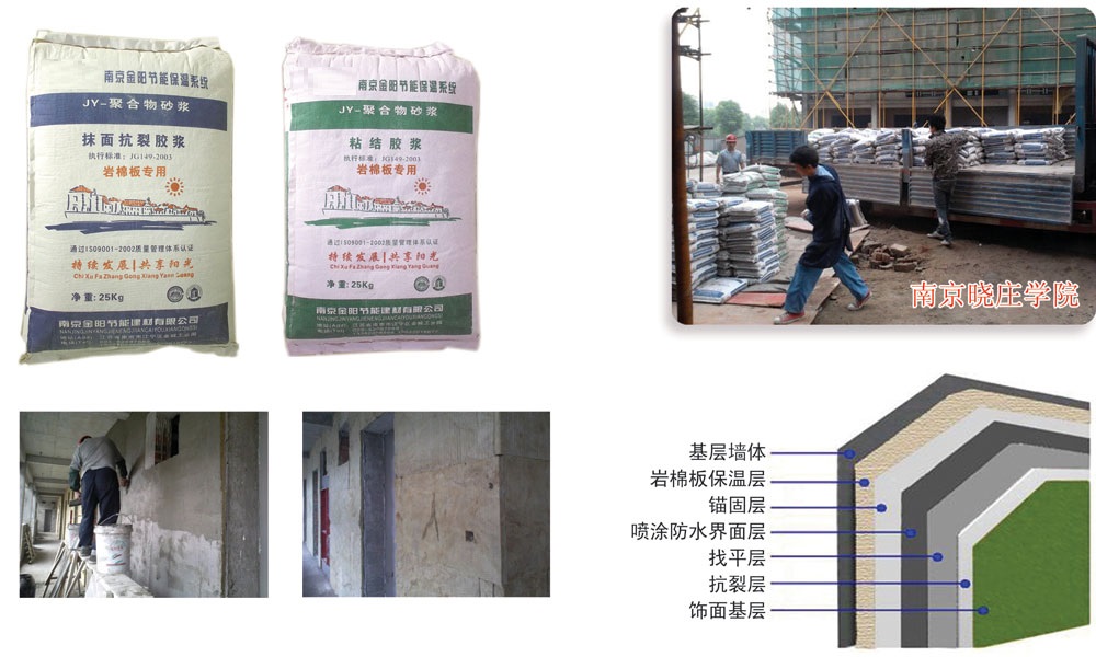 巖棉板專用砂漿是本公司針對(duì)巖棉板不易粘結(jié),易開(kāi)裂而精心研發(fā)的一種高強(qiáng)度粘結(jié)砂漿。添加了多種進(jìn)口膠粉及抗裂成分使得抹面層的抗沖擊性大大提升。產(chǎn)品能永久粘結(jié),不脫落,防滲,抗裂的特點(diǎn)。從而保證巖棉板保溫層外墻涂料的使用壽命。