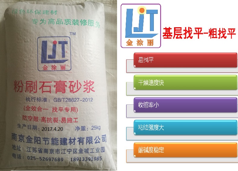 產(chǎn) 品 說(shuō) 明 金涂麗石膏找平膩?zhàn)邮且环N綠色環(huán)保不含任何有害物質(zhì)的墻體粉刷材料。由天然石膏粉和優(yōu)質(zhì)石英砂以及多種進(jìn)口原料混合而成。現(xiàn)已廣泛用于室內(nèi)裝修頂棚、墻體找平。具有與基層粘結(jié)牢固,不空鼓,不開裂,不脫粉,輕質(zhì),防火,保溫隔熱,吸 音等功能。